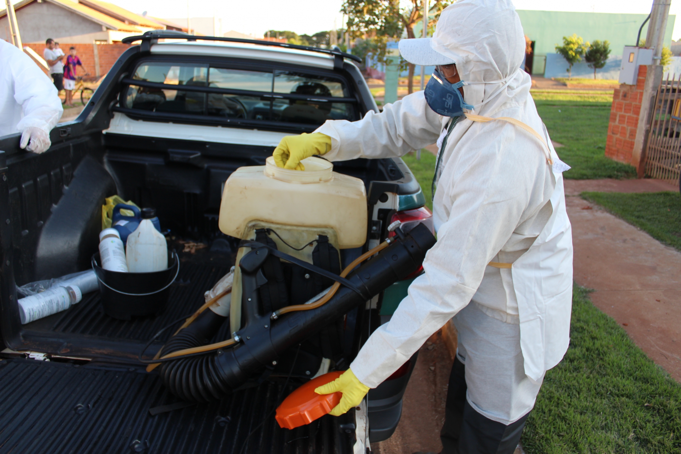 Para minimizar o índice de infestação da Dengue, os Agentes Comunitários de Endemias (ACE) estão passando veneno com máquina costal em localidades específicas da cidade. O veneno é aplicado somente nas regiões onde foram confirmados ou notificados casos de dengue.
