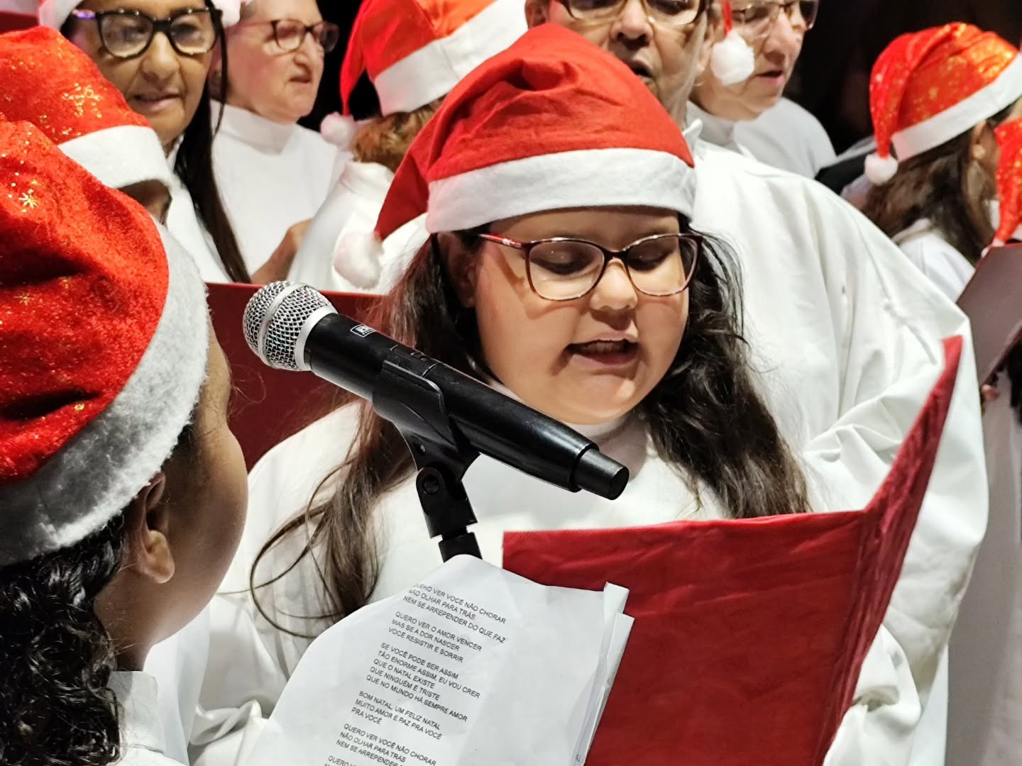 O evento começou com uma linda cantata, onde as mulheres e crianças mostraram seus talentos e encheram o ambiente com vozes harmoniosas e alegres. Em seguida, a peça de teatro "O Rápido do Papai Noel" encantou o público com sua história divertida e emocionante.
